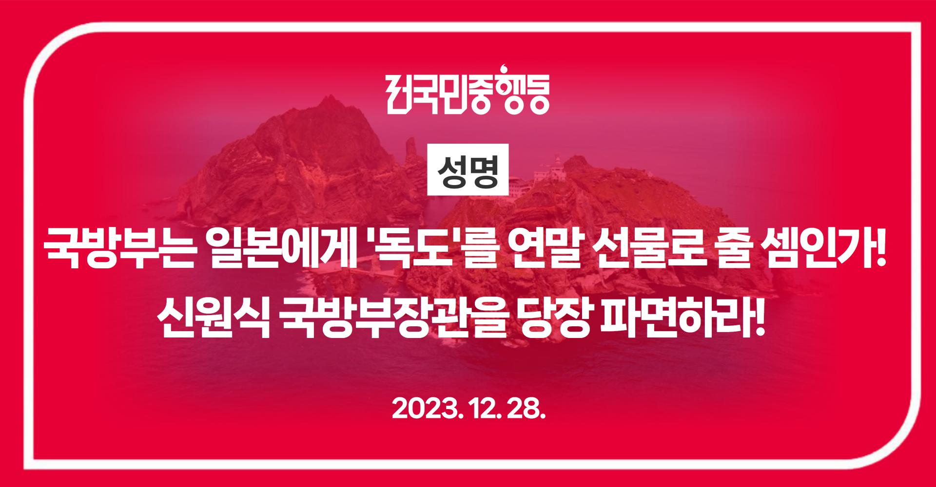 국방부는 일본에 '독도'를 연말 선물로 줄 셈인가! 신원식 국방부장관을 당장 파면하라!